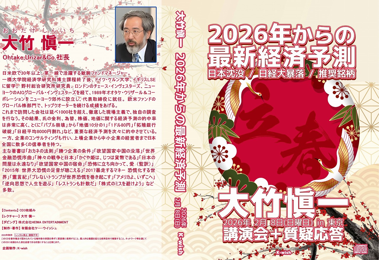 2026年2月8日収録の2026年からの経済予測(3枚組)のCDが出来上がりました。